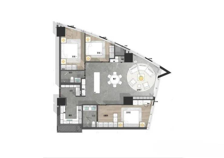 H户型-峰熠 三室两厅两卫 约174m²