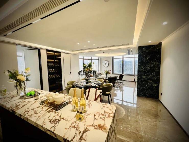 餐、客一体宽奢空间,精致酒柜配置。