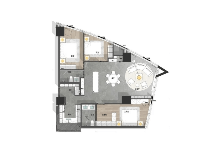 I户型建面约154㎡2室2厅2卫