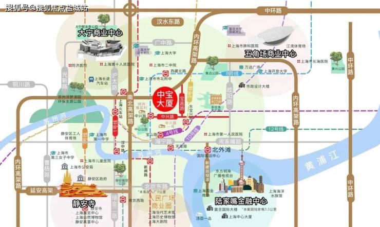 2. 交通配套:「静安福邸」周边交通便捷,三轨环绕,包括3、4、8号线。距离3、4号线宝山路站以及8号线中兴路站仅约800米,方便您轻松抵达城市的各个角落。此外,自驾出行也十分便利,距离内环高架、南北高架等主干道近在咫尺,可快速到达人民广场、南京路等繁华区域。