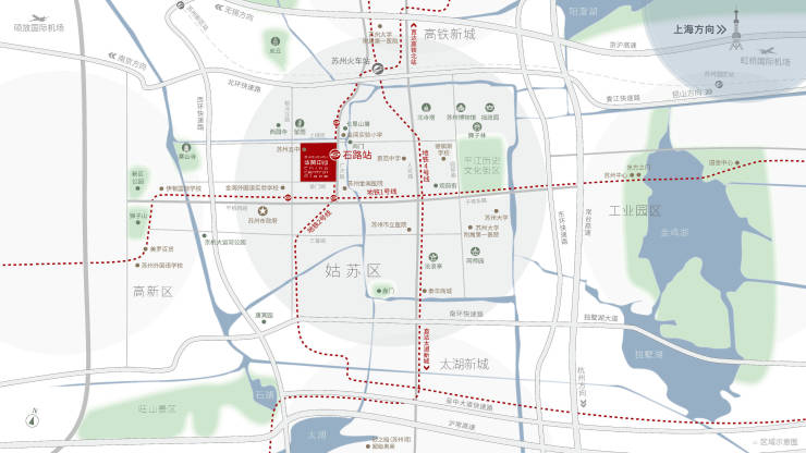 项目位于姑苏区古城核心阊门外,毗邻四大名园之一的留园,对望苏州博物馆,周边寒山寺、七里山塘等世界文化遗产资源环绕。