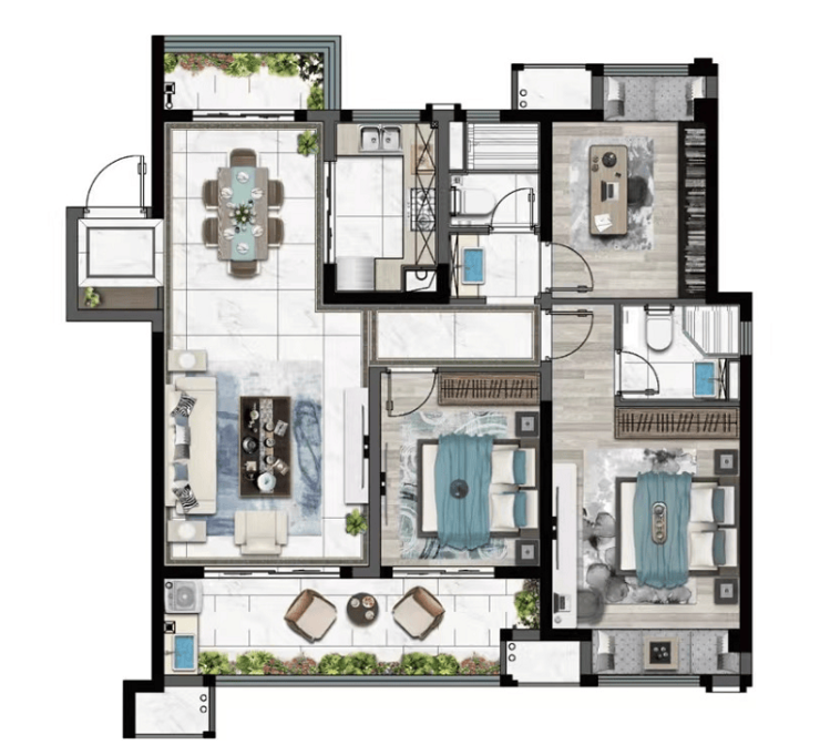 建筑面积约122㎡户型,南北通透+双阳台客厅,通透又实用。南北宽景阳台的设计,足不出户遍赏四季盛景;餐客厅阳台连为一体,无论是空间还是视野都更加开阔;主卧套房设计,尊享私密空间。