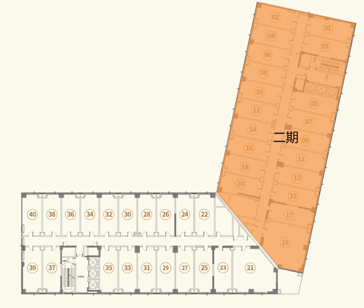楼层平面图:单层20户,南北各10户