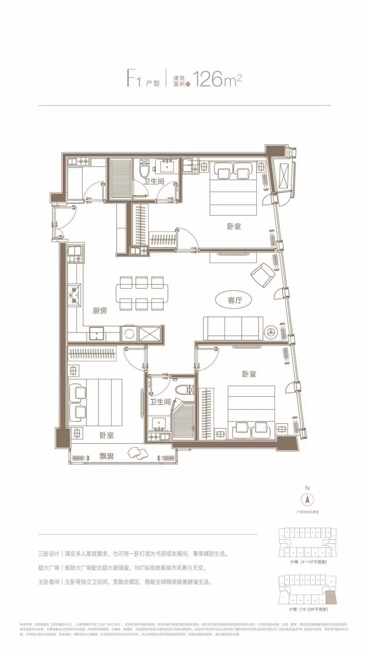 三卧设计|满足多人家庭空间需求,可灵动规制书房或衣帽间,奢享精致生活。
