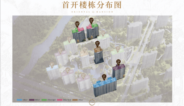 5.产品类型:南区规划13栋建面约158㎡、180㎡、210㎡、310㎡世家人文大宅