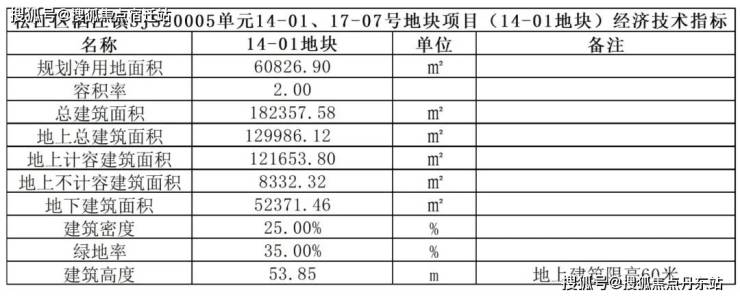 14-01地块:住宅用地,容积率2.0,限高60米,计容面积121653.84㎡;