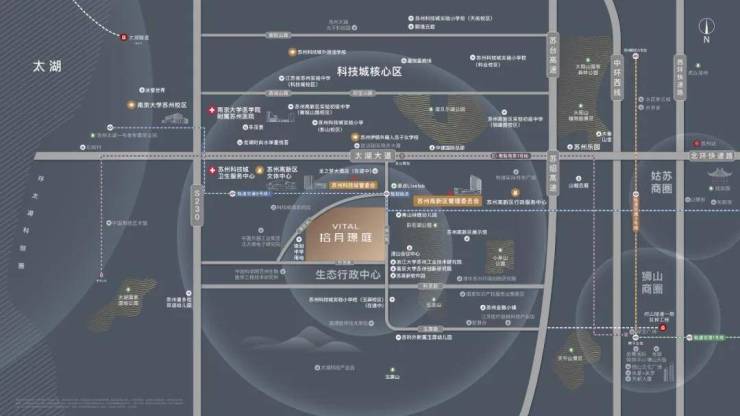 ◆苏州核心板块梯队:苏州科技城位于苏州西部,西临太湖,东依大阳山国家森林公园,是苏州市“一核四城”发展定位中的生态科技城的重要组成部分,是苏州高新区行政中心所在地。