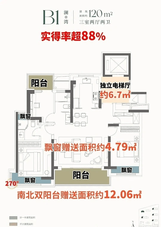 高实得率+独立电梯厅+南北双阳台,