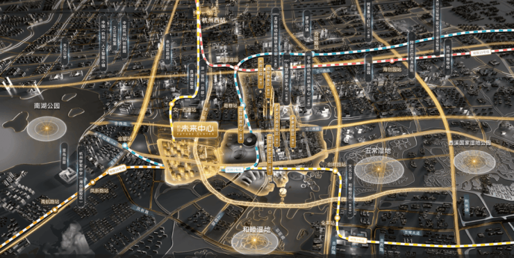云玺所在的地铁3、5、16号线交汇绿汀路站,与杭州万象城所在“钱江路站”、杭州中心所在“武林广场站”同样,是杭州稀有的三站以上换乘的地铁枢纽,在城西更是罕见,难以比拟的“第三中心”核心站位,先见者,预见大格局。
