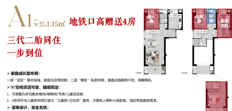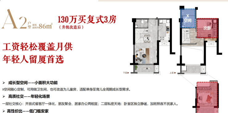 【产品面积】建面约86-135㎡复式“2+1”房、4房