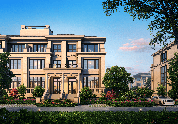 联排别墅采用法国古典主义建筑风格,建筑面积约3.8万方。