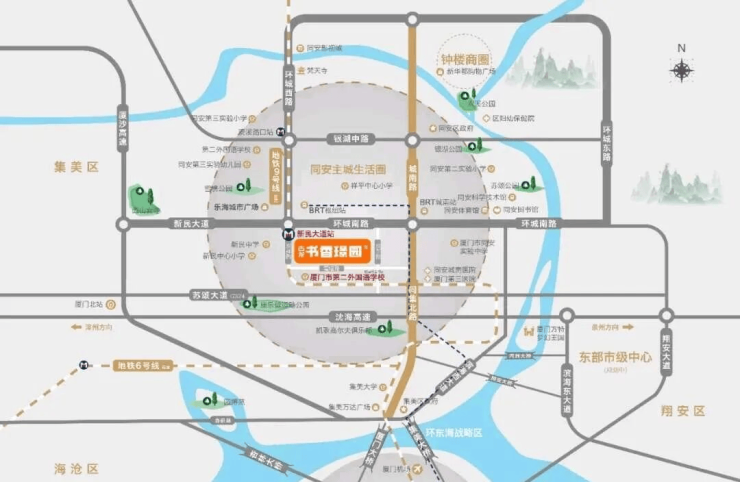 (1)轨交动脉:紧邻在建地铁6/9号线新民站(步行约80-100米),2026年通车后可实现4站直达集美新城、8站接驳岛内湖里创新园,日均通勤时间缩短至约18分钟。