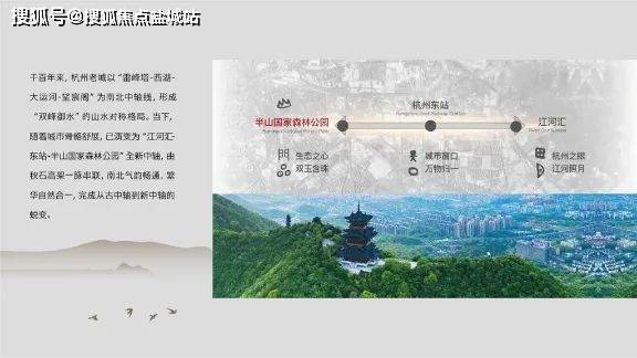 1.楼盘位于杭州拱墅区,坐落于半山森林公园内,占地101余亩,容积率仅1.0,为主城区打造一座低密的总部生态办公、花园商务院区。