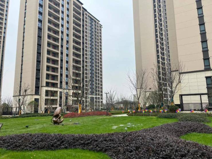 进入小区之后,可以看到,整体的绿化做的还是不错的。树上挂着铃铛,风一吹,声音很悦耳。地上还有彩色的小风车在不停转动。每一户的阳台上都挂了红色的中国结,看上去很喜庆!