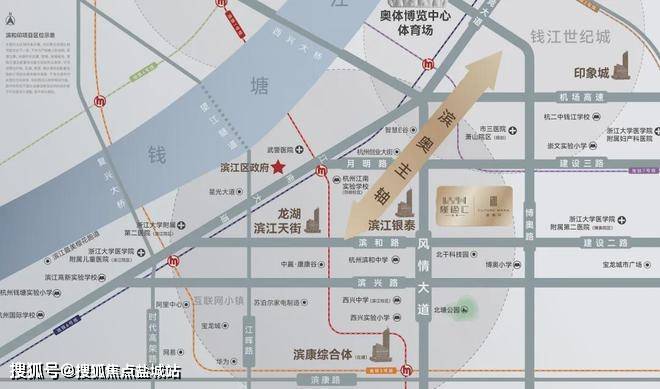 位于滨江与奥体交汇的核心板块--滨奥主轴之上,风情大道与建设二路,距离滨江核心区直线距离约1.9公里,距离奥体中心直线距离约2.5公里。本案方圆3公里范围,几乎同享滨江与奥体所有核心配套,如此得天独厚的地理位置,不仅完全满足滨江高端改善置业需求,也是目前杭州江南岸唯一一个,可同享滨奥核心资源的板块。