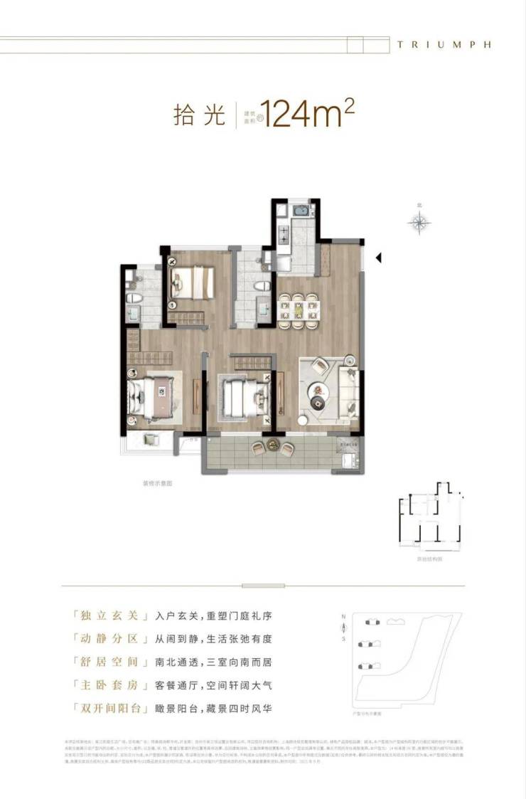 七、景观鉴赏 一轴一庭三进五园:景观轴、清韵庭、慧心园、中央花园、运动花园、童趣园、溢香园; 两环两廊两版块: 两环(市政慢行环、绿带隔离环) 两廊(城市形象廊、共享走廊) 两版块(住宅版块、枢纽版块)