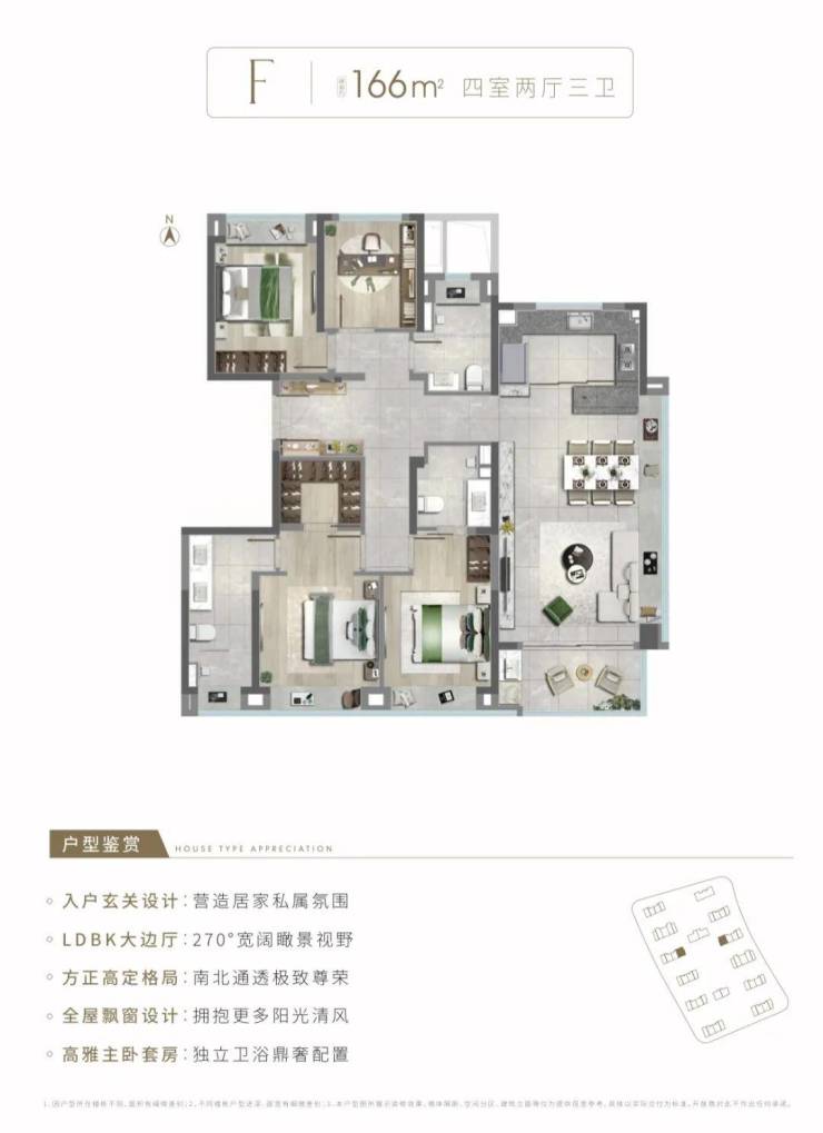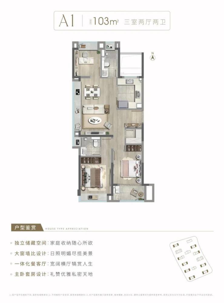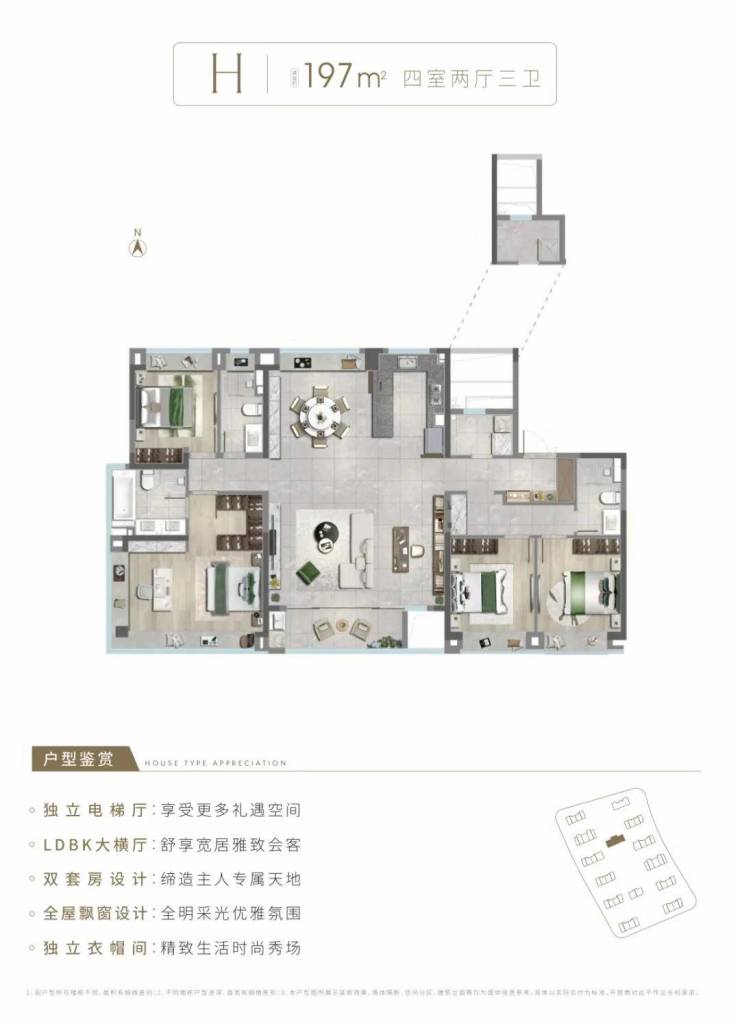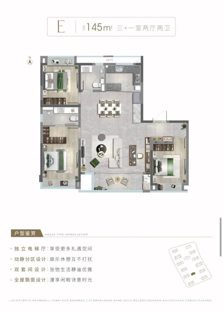 项目共14幢14-17层的小高层,共有4个面积段7个户型,建筑层高约3.15米。