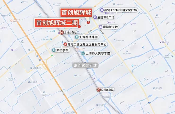 首创旭辉城坐落在胜辛路和汇源路交汇处,嘉定北部区域,东至胜辛北路,北至宝钱公路,南至汇源路。项目总占地面积123089.5平方米,总建筑面积约344168平方米,项目涵盖别墅、高层住宅、花园联排。 是由旭辉集团和首创置业强强联手打造的34万方墅区大城
