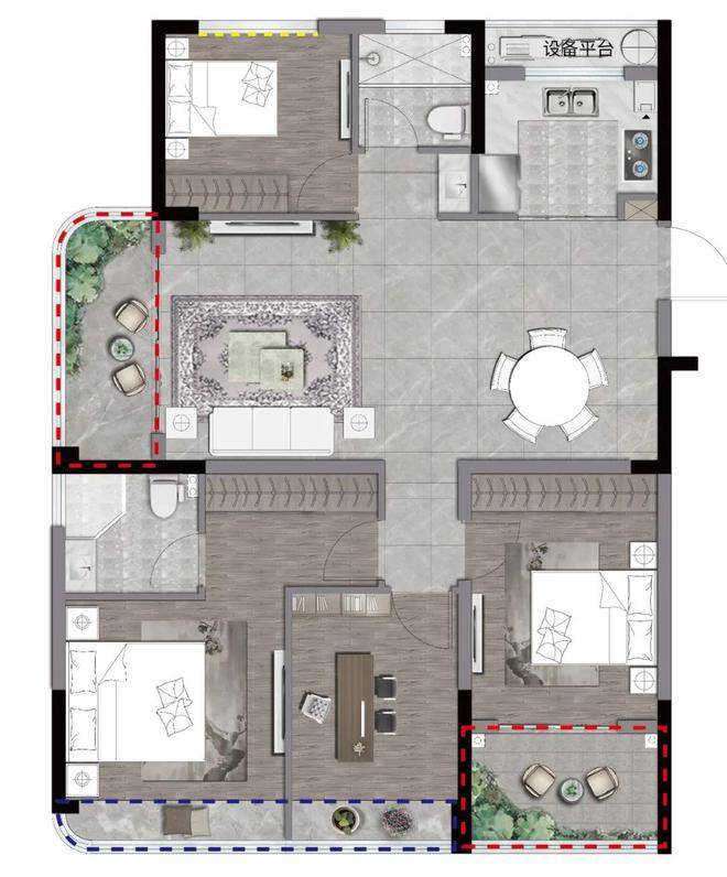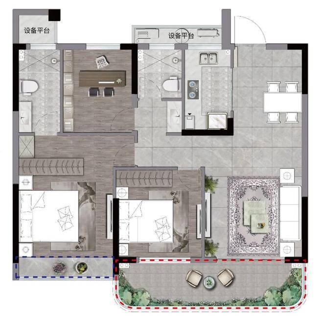 客厅连接双开间景观阳台,稳稳放下所有“小心思”。