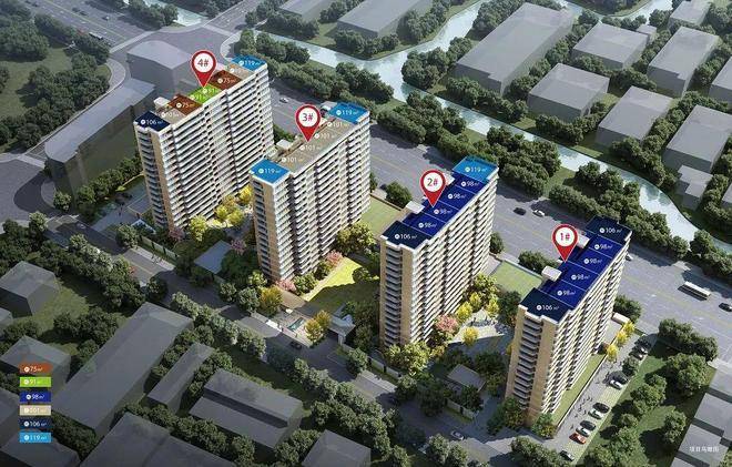 项目总建面8.23万㎡,体量不大,齐整排布4栋香槟金小高层。