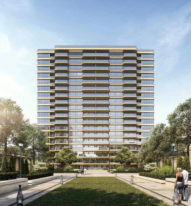 他将简洁大气的大面玻璃融入建筑,又在转角处增加香槟金弧线,阳台采用挑出设计,勾勒出简单明晰、又交错层次的形体关系。