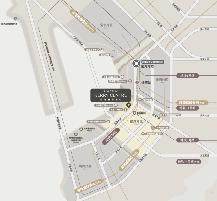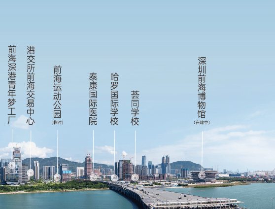 已有2所三甲级标准医院,3所国际学校,5大商业中心,已初现曼哈顿的雏形,前海综合交通枢纽、深圳前海博物馆、腾讯“互联网+”未来科技城等在规划建设中。