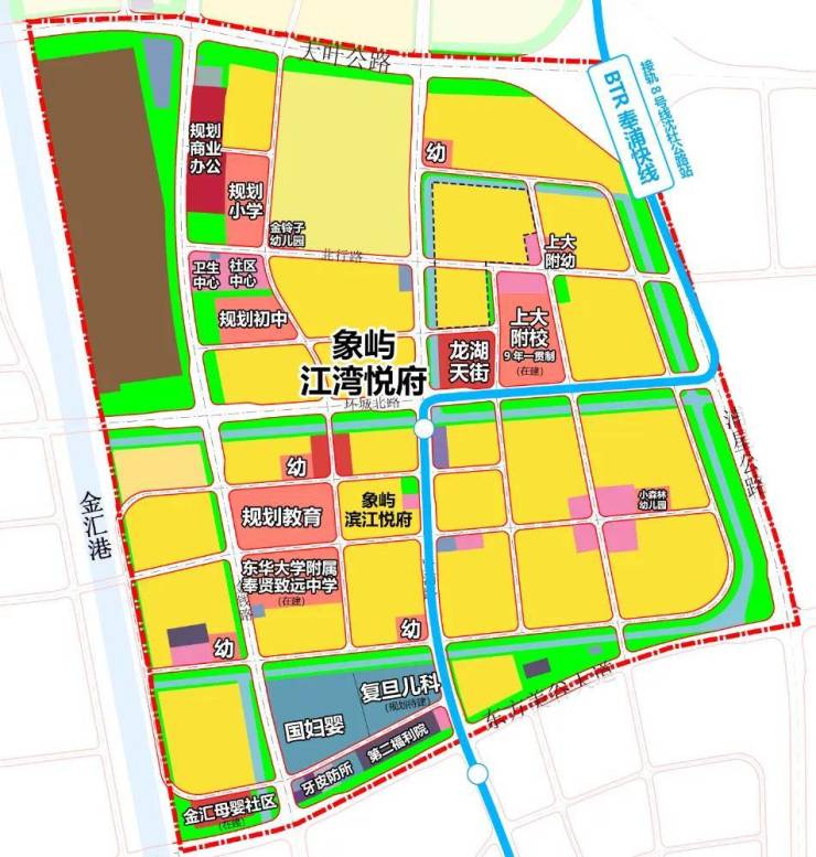 周边还有建面近2万方的金汇社区医院、奉贤区皮肤病防治所及牙病防治所、金汇母婴社区(在建),奉贤新城的三甲综合性医院新华医院奉贤院区(直线距离项目约6.4公里)也即将于2025年投入运营。
