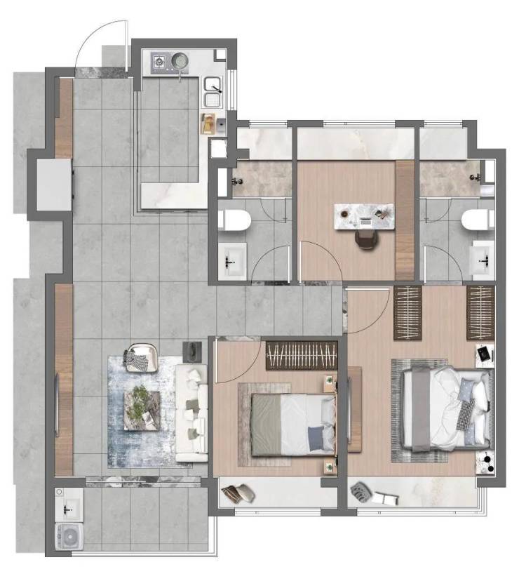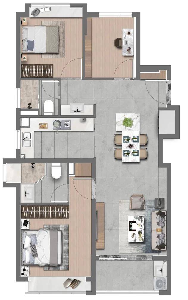 约93-97㎡3室2厅2卫,功能性强,双卫设计,生活更加从容。