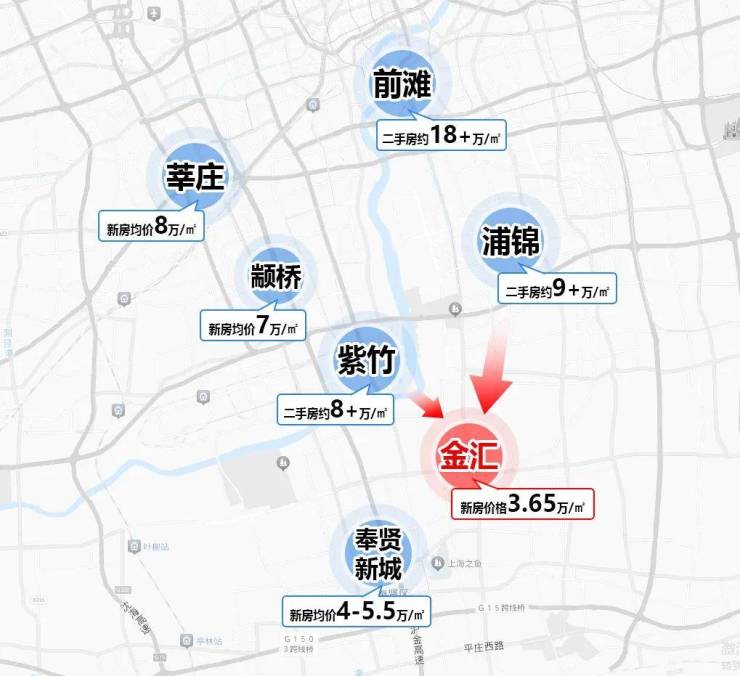 作为滨江南首站、奉贤接壤市区的门户,金汇凭借着明显的房价剪刀差,以及近市区的特点,近些年吸引了众多新上海人前来安家置业。