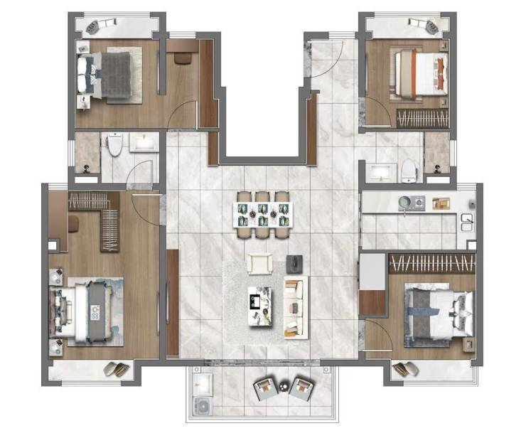 此外,项目还推出了约143㎡大平层,4室2厅2卫,飞机户型,动静分区,尽享奢阔居住尺度。