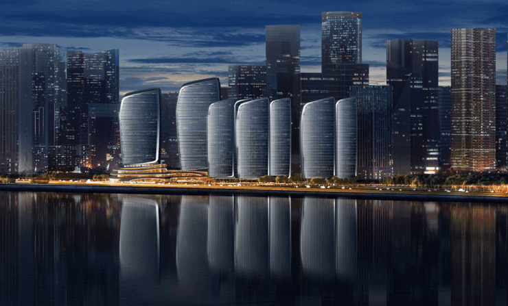 - 景观由 SWA、BPI、中国美院 联合打造,引入水系分割办公区与居住区,形成动静分区的生态空间。