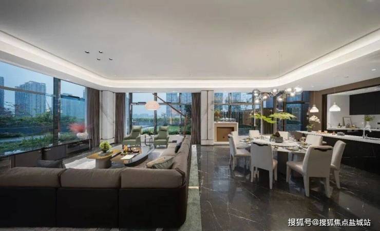 越是繁华的都市中心,越需要返朴归真的园林为人们纾解放松,就像当年十城门内的凤起潮鸣一样。江澜云境阁室内基本都用全景落地长窗,三个采光面加起来竟有约54米,相当于窗外有“2.5个IMAX屏幕”那么长的风景。再搭配标准层约4.19米的层高,空间感霸气无匹。