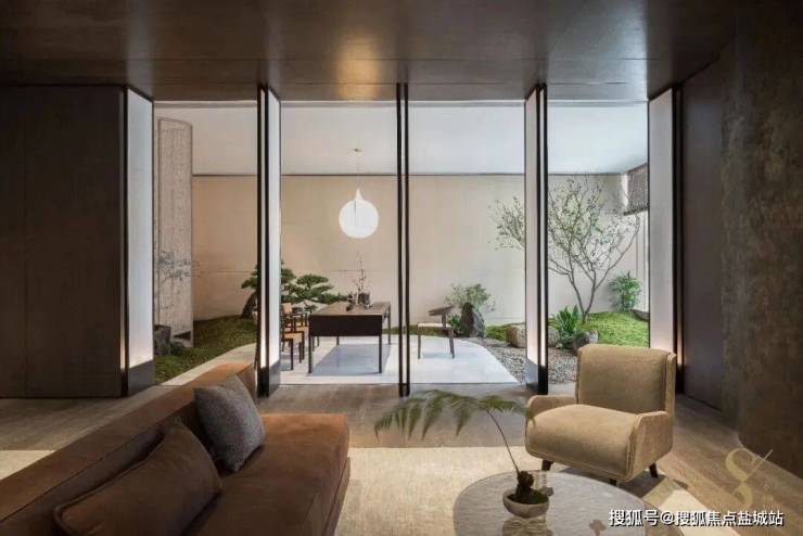 从室内到室外,处处皆景,演绎一派“石径入丹壑,松门闭青苔”的景象,私属园林的惬意优雅不过如此。各取所需的空间属性,在强调了空间迭代递进之时,又增强了边界的自由属性,给生活带来了变革与生趣,奢雅之余彰显了大平层的生活精髓与空间气度。