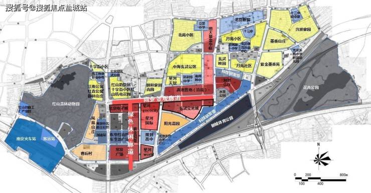 项目东至北苑东路,南至红山南路,西至恒嘉路,北至规划领智路、寒光亭路,由6幅地块组成,总占地面积约11万平方米,未来拟发挥TOD交通枢纽核心优势,搭建“产学研”一体化的生态架构体系;同时引入软件和信息服务、金融科技、人工智能、数字创意等业态,建设多引擎驱动、多业态融合发展的国际化智慧园区,形成科技创新产业集群。该项目也是玄武2021年首个省级重大项目