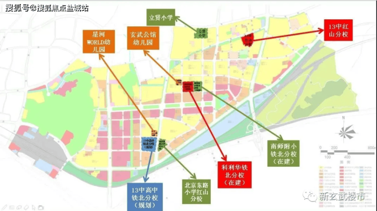 教育配套:新玄武拥有立贤小学、南师附小铁北分校(直属分校)、科利华铁北分校(直属分校)、北京东路小学红山分校、十三中红山分校,规划还有十三中高中分校,丰富的优质教育资源无疑令其他板块艳羡。