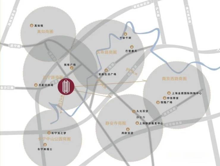 苏河云峰周边约3公里范围内,荟聚武宁路、长风、长寿路、曹家渡、中山公园、静安寺、南京西路等商圈,享受上海繁华生活、国际潮流配套 。