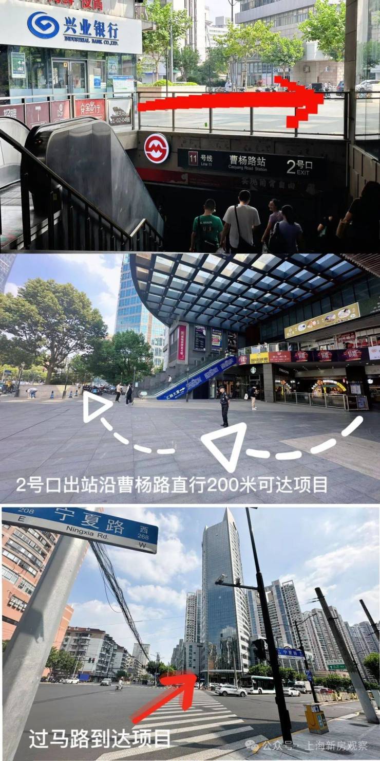 交通配套:3/4/7/11/13/14号线,6轨环伺,出门直上内环高架:周边约1km范围内,扎堆聚集了6条轨交——3/4/7/11/13/14号线,项目距离曹杨路站约200米,3站直达静安寺、5站人民广场!这样密集的轨交分布,从某种程度上来说,也是区域繁荣指数的反映!
