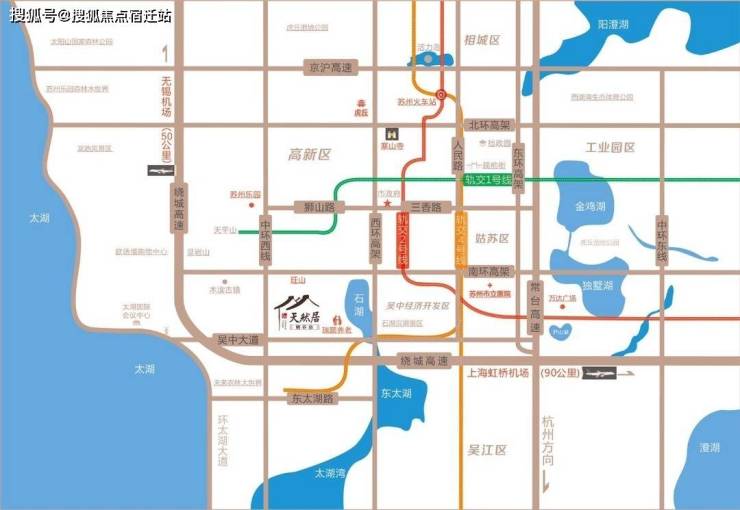 自驾:吴中大道三分钟上中环西线,苏福快速路,南环高架直达市区,苏州三大高铁站极为便利;8分钟从吴中大道进入沪常高速—苏绍高速—无锡支线共计50分钟到无锡硕放机场;