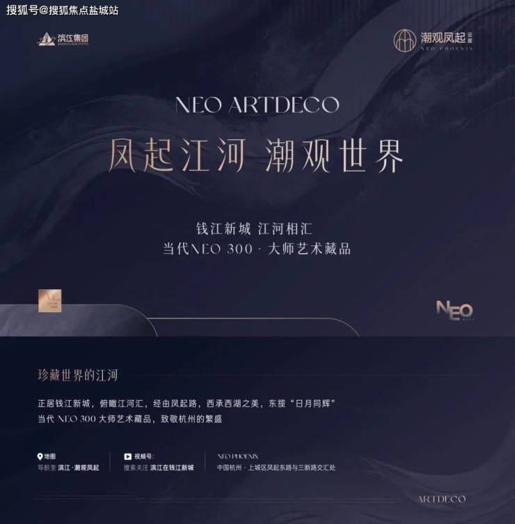 为了致敬杭州的繁盛,滨江集团力邀大师团队,融合ART DECO经典艺术,匠造「潮观凤起」,以当代NEO艺术300方,定标杭州鼎盛之作。