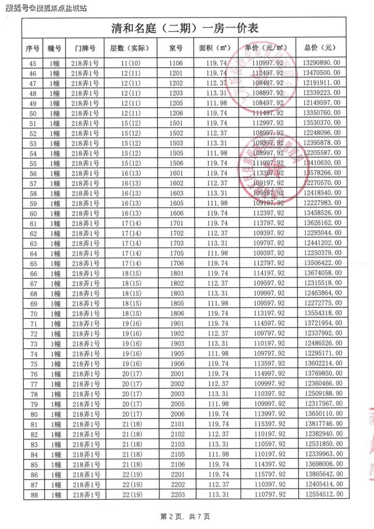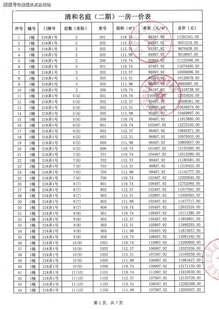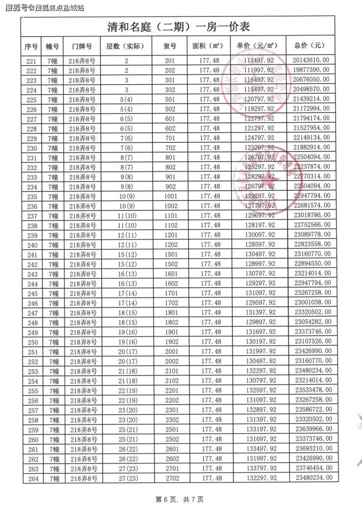 一房一价表格