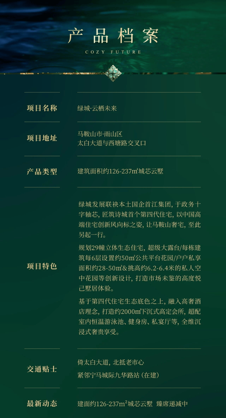 它回应了时代对高品质生活的呼唤,以超越期待的实物标杆,诠释了“好房子”的完整内涵——它既是物理空间上安全、舒适、绿色的载体,也是精神层面具有文化认同与情感归属的家园,更是由全生命周期服务所滋养的美好生活本身。绿城·云栖未来,正以标杆之姿,启幕马鞍山的人居未来。