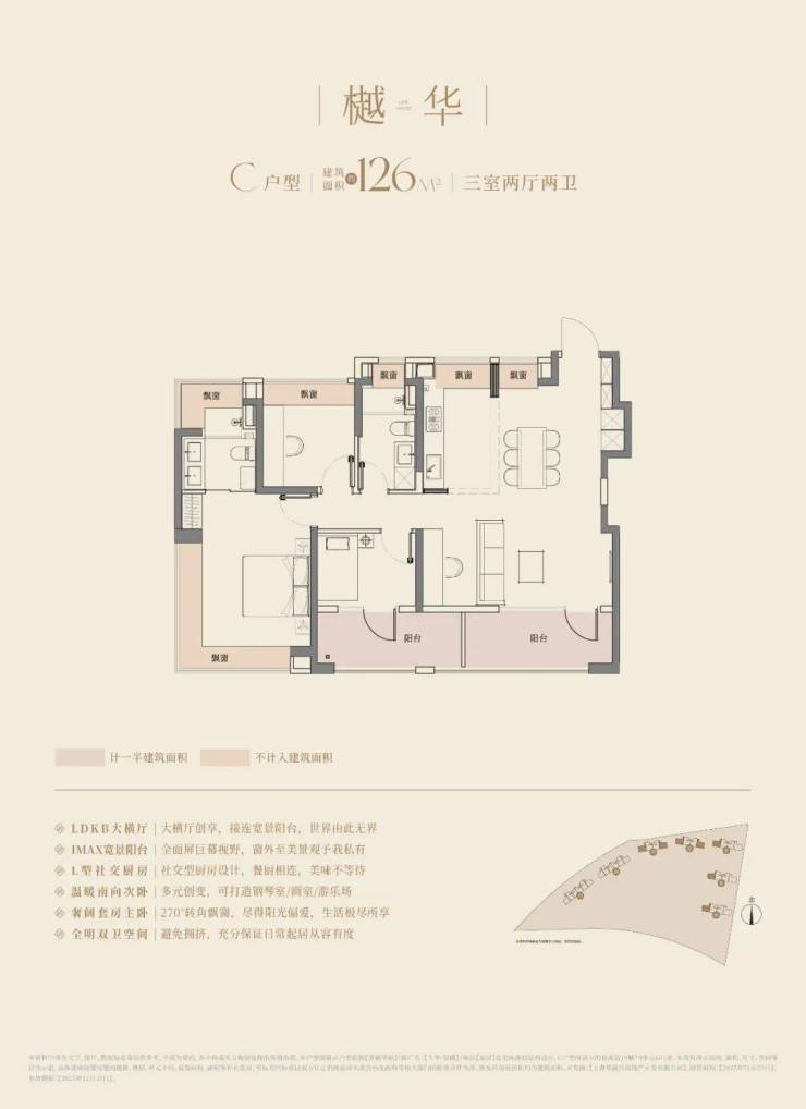 大华望樾的高层建面约94㎡户型做到了三阳台的配置;