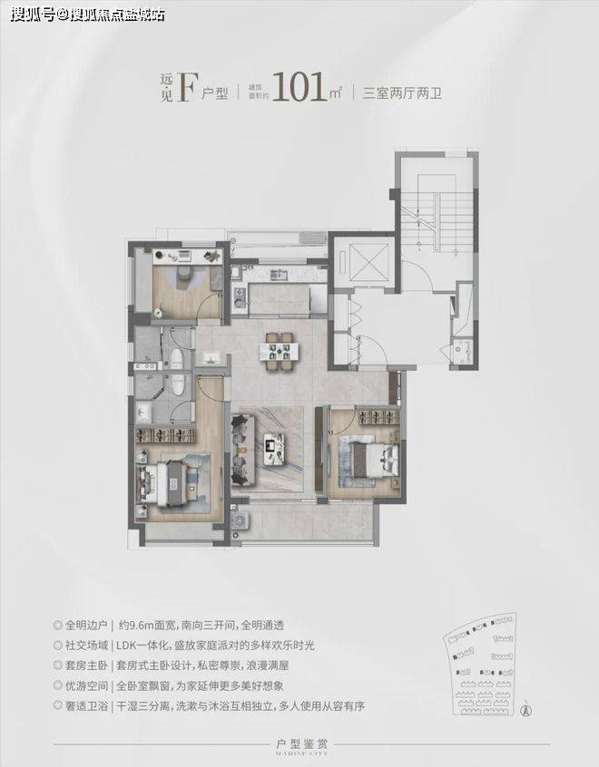 远·见建筑面积约101㎡F户型