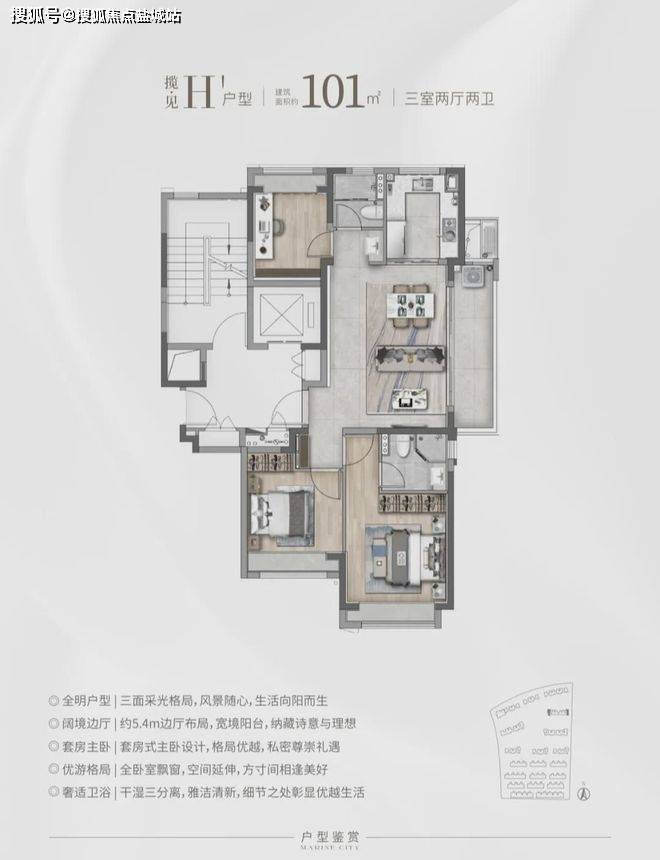 瞰·见建筑面积约101㎡H户型