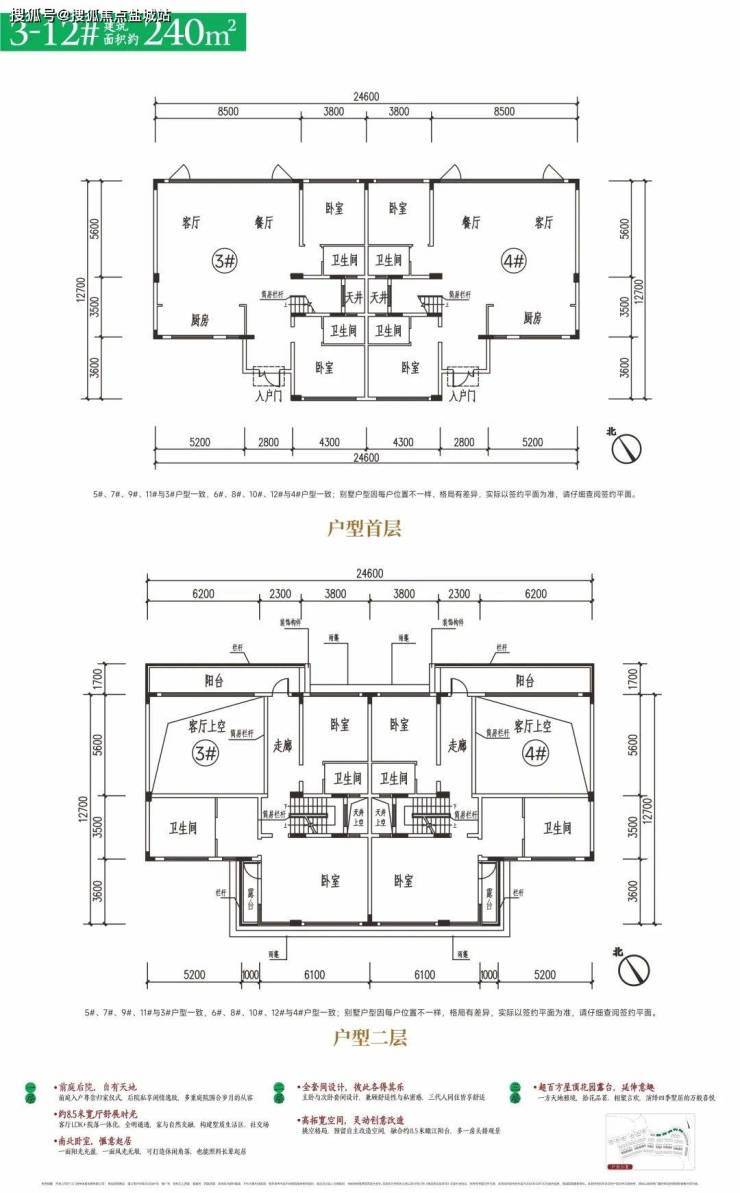 ①户型迭代:建面约220㎡联排别墅,使用率从原来的约118%提升至181%;建面约240㎡双拼别墅,更是提升至184%。换言之,你买入约240㎡别墅,实得约441㎡空间;你买入约220㎡联排别墅,实得约398㎡空间。