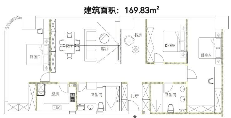 𝟏、户型稀缺得房率高:2梯4户,主力面积170-277m²。7开间朝南,全明户型,得房率最高达到93%,从居住角度看,空间越大越适宜