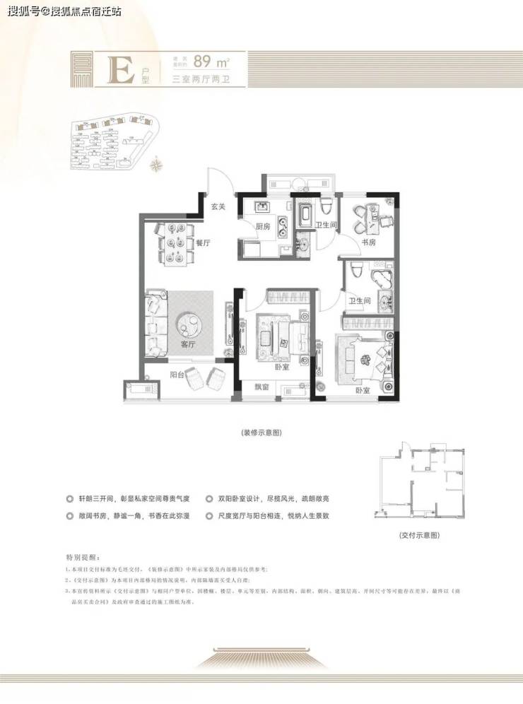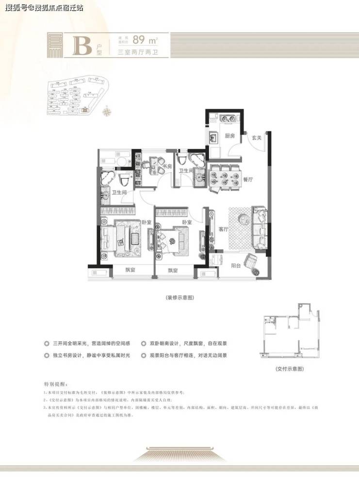 雅致三居,尽享温馨:89平米起,巧妙布局的三房两厅两卫,空间利用最大化,既满足现代家庭的居住需求,又不失生活的格调与品质。