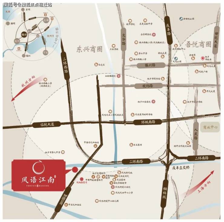 在江南的温婉之地,鸿翔·凤语江南【雅苑】静谧绽放,其址定于桐乡市新320国道与新兴路的交汇处,犹如一颗璀璨的明珠镶嵌于繁华与宁静之间。此项目,不仅承载着居住的理想,更融合了自然与人文的精髓。