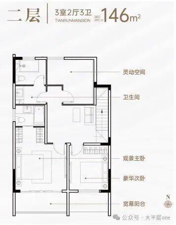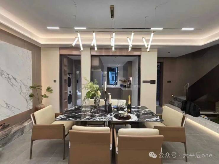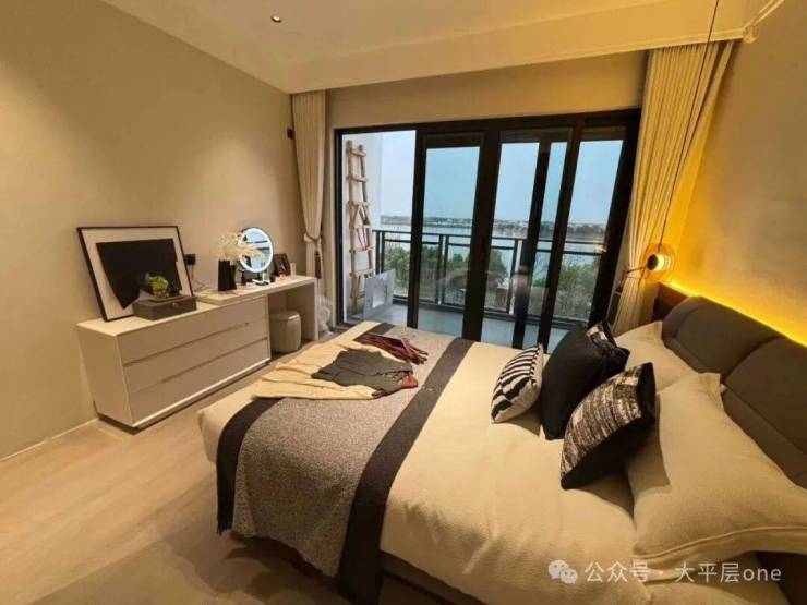 三、空间革命,146㎡叠墅演绎极致生活美学 【下叠·庭院时光】 146㎡阔境空间,7米面宽南向双开间(3.9m+3m),三房两厅三卫设计,两房朝南沐浴充足阳光。约16.2㎡私家庭院,可植竹养荷,亦可品茗会友,让自然与建筑共生共荣。 【上叠·星空之境】 同面积段上叠产品,以双层空间重构垂直生活美学。7米面宽配合全景落地窗,将周庄的晨昏四季尽收眼底。三卫设计实现主客分离,私密性与仪式感兼得,满足精英阶层对品质生活的苛求。