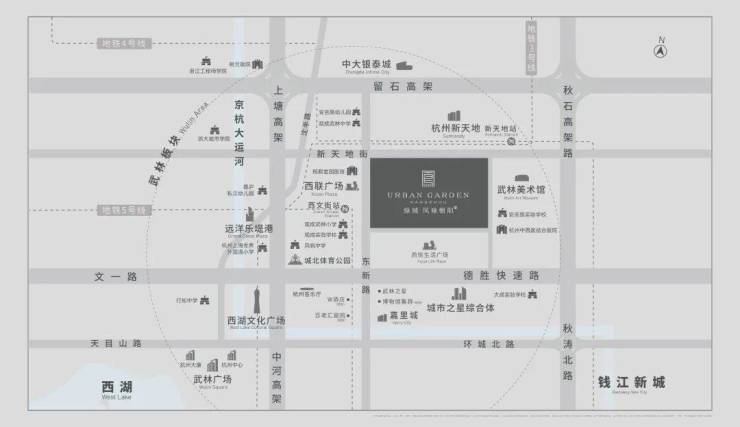 凤咏朝阳就在武林广场北面,璀璨的新天地板块。